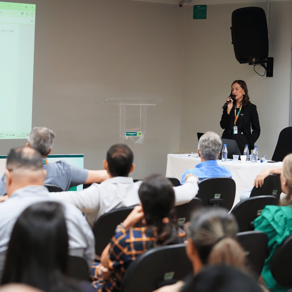 A programação apresentou a história da instituição, sua estrutura de governança, a diretoria executiva e o papel estratégico da área de Relacionamento com o Cooperado, responsável por acompanhar, orientar e integrar os novos profissionais à dinâmica da cooperativa.